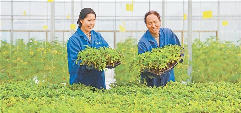 隴南市武都區(qū)石門(mén)鎮(zhèn)青隴現(xiàn)代農(nóng)業(yè)產(chǎn)業(yè)園里,產(chǎn)業(yè)工人忙著搬運(yùn)西紅柿育苗盤(pán)