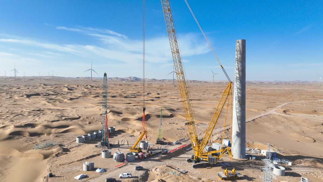 12月8日,甘肅省張掖市高臺(tái)縣北部灘百萬(wàn)千瓦風(fēng)電基地,一座座高大的風(fēng)車(chē)高聳入云,巨大的葉輪隨風(fēng)舞動(dòng),將風(fēng)能轉(zhuǎn)化為電能送到千家萬(wàn)戶(hù)。