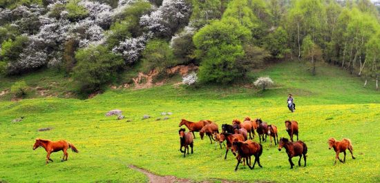 關(guān)山在很長一段時間一直是中國重要的牧馬之地。據(jù)史書記載,大將衛(wèi)青、霍去病北征匈奴,曾從關(guān)山征集戰(zhàn)馬14萬匹,足見當時這里牧馬業(yè)的繁盛。然而現(xiàn)在,馬的蹤跡只是景區(qū)的點綴,要想看到萬馬奔騰的場面,要去河西走廊的山丹軍馬場。