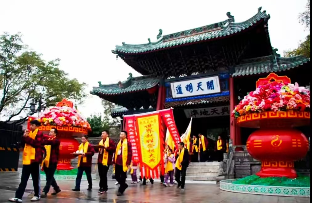 上午九點,趙氏天水堂內(nèi)旌旗招展、鼓樂同鳴。趙氏宗親代表隊及舞獅隊、鑼鼓隊、嗩吶隊、腰鼓隊等前往伏羲廟拜謁中華人文始祖伏羲。隨后,祭祖大典在古樸大方、莊嚴(yán)肅穆的趙氏天水堂正式拉開帷幕。