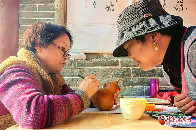 她還走進(jìn)蘭州開放大學(xué),為熱愛刻葫蘆的老年人手把手地傳授技藝,耐心細(xì)致地指導(dǎo)他們?nèi)绾卧谛⌒〉暮J上刻畫出精美的圖案。