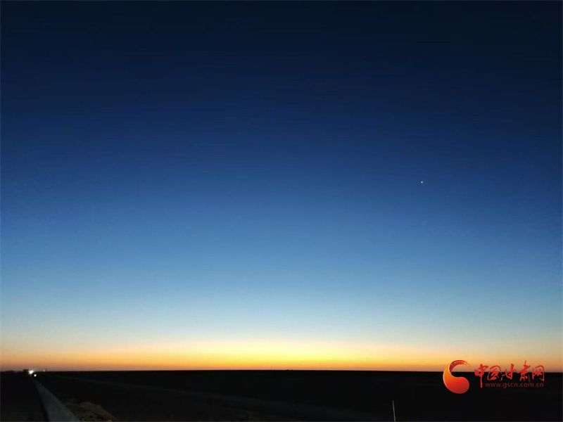 李志虎手機(jī)珍藏了許多日出、日落的影像,這是他們?cè)绯鐾須w看到“大漠孤煙直,長(zhǎng)河落日?qǐng)A”美景的見(jiàn)證,也正是這日復(fù)一日的努力,讓肅航公路在戈壁延伸。