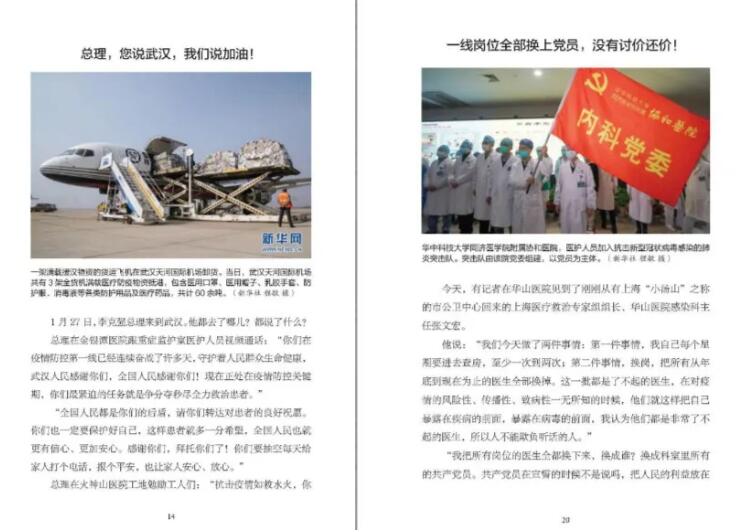《2020:中國戰(zhàn)“疫”日志》一書以日志的形式,記錄了2020年1月23日到2月23日期間,中國每一天的戰(zhàn)“疫”故事:廣大醫(yī)護(hù)人員沒有遲疑、沒有退卻,和死神賽跑,與病毒抗?fàn)?,為生命接力;堅持工作的人民警察、外賣員、環(huán)衛(wèi)工人、快遞員、志愿者……穿梭在城市的每個角落,守護(hù)著自己的城市;許多媒體記者冒著被感染的風(fēng)險,深入一線采訪報道……