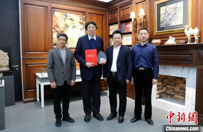 圖為主辦方卻專程來到天津大學(xué)馮驥才文學(xué)藝術(shù)研究院,送獎上門。 馮驥才文學(xué)藝術(shù)研究院供圖