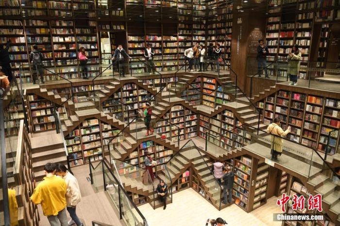 資料圖:重慶九龍坡區(qū)商圈內(nèi),一書(shū)店因設(shè)計(jì)感非常獨(dú)特,吸引了不少民眾前來(lái)打卡玩耍。陳超 攝