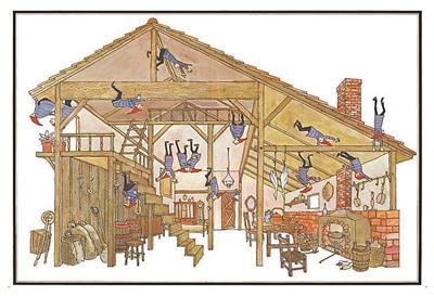 安野光雅在《思考的孩子》中講述說,小時候他曾和弟弟說:“告訴你一個秘密,千萬不要說出去喔。我們家有間地下室,里面有好多金銀財寶、衣服和玩具。入口就在米柜里,只要把米撥開,挖呀挖到最深處,就會看到地下室了。”當時弟弟的表情超級認真。“而我說著說著,連自己都覺得真有那么一回事。后來,我問弟弟還記不記得這件往事,他說,那是他心靈最快樂的一段時光。”