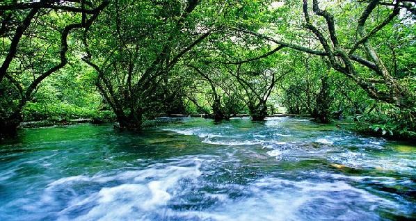 “這溪河哪里來(lái)的?”布依漢子對(duì)我邊點(diǎn)頭邊自豪地說(shuō),“對(duì)外來(lái)客人,我們時(shí)常說(shuō),是從石縫里冒出來(lái)的,是從泉眼里淌出來(lái)的,是從林中湖泊里漫進(jìn)山坡泥巴中的。故而,森林外頭哪怕是連天大太陽(yáng),茂蘭森林里仍然是像這會(huì)兒一樣涼爽。太陽(yáng)一落坡,水氣、潮氣、陰氣一起襲來(lái),還得趕快離開(kāi)林子。”