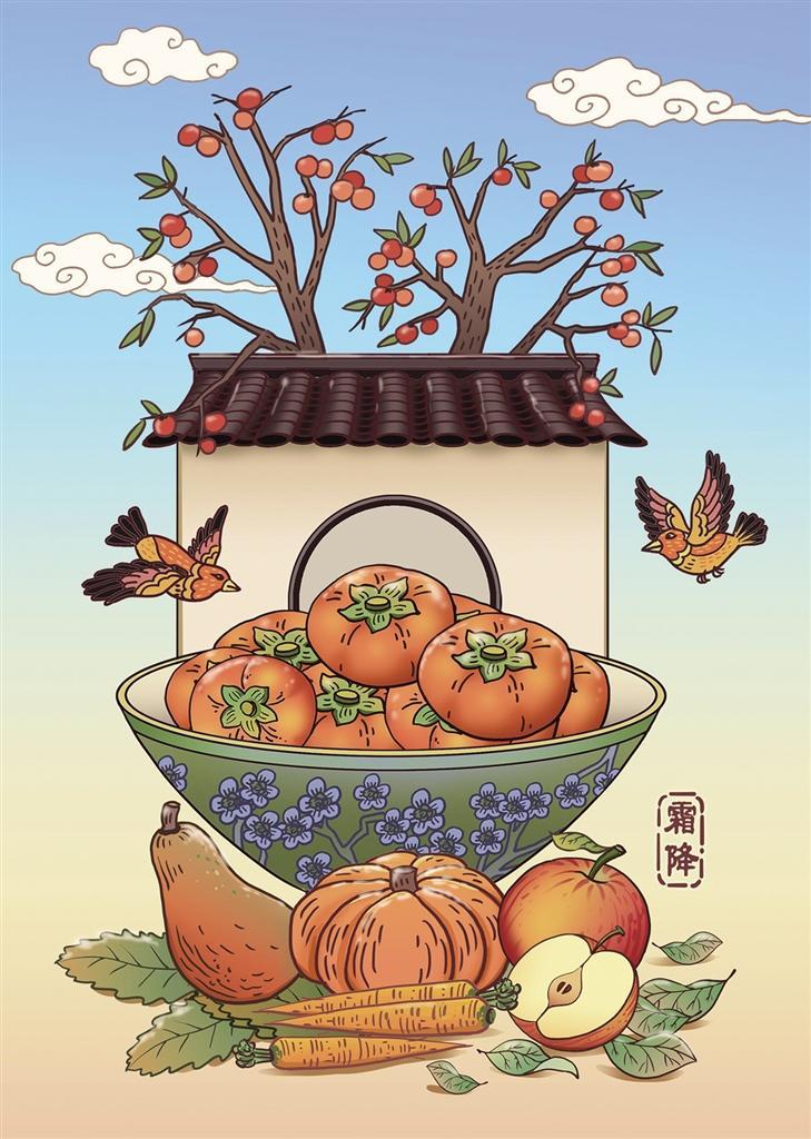 “對(duì)于節(jié)氣起源地區(qū)來(lái)說(shuō),‘霜降見霜花兒,立冬見冰碴兒’。”宋英杰表示:“雖然民間仍稱霜降為‘下霜了’,但在漢代,人們便已知曉霜是‘其由地發(fā),不從天降’的道理。因此,霜并非從天而降,而是遇物而凝。當(dāng)近地面的溫度低于0℃時(shí),水汽凝結(jié)成晶瑩的霜花或冰針。我們以‘凌霜做雪’形容性情的堅(jiān)韌,以‘飽經(jīng)風(fēng)霜’形容歲月的磨礪。‘風(fēng)刀霜?jiǎng)?rsquo;,霜被描述成一種鋒利的冷兵器,成為‘殺’的代名詞。”