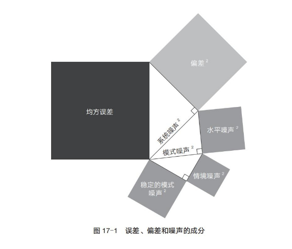 雖然我們很想謹慎一點,盡量避免基于有限的案例做出過度性概括。然而,整合我們研究后發(fā)現,穩(wěn)定的模式噪聲實際上比系統噪聲的其他成分都更為重要。由于我們很少在同一研究中全面地探究誤差的各個組成部分,因此需要進行精確的分析才能得出這樣一個暫時性的結論。簡而言之,以下就是我們所知道的和所不知道的。(摘自第17章 噪聲源:偏差是引人注目的圖形,而噪聲是不受我們關注的背景)