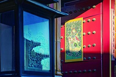 2019年春節(jié),故宮張燈結(jié)彩,在宮門上懸掛門神畫,歡迎全國(guó)游客來(lái)故宮里過(guò)大年。