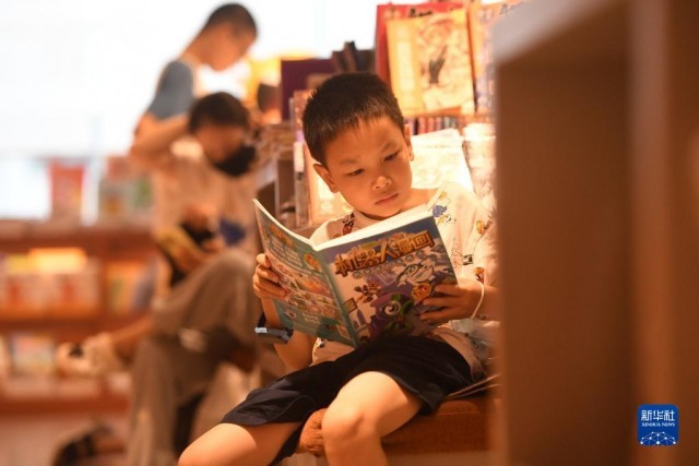 進(jìn)入暑假,廣西南寧市不少學(xué)生來到書店閱讀,享受書香假期。