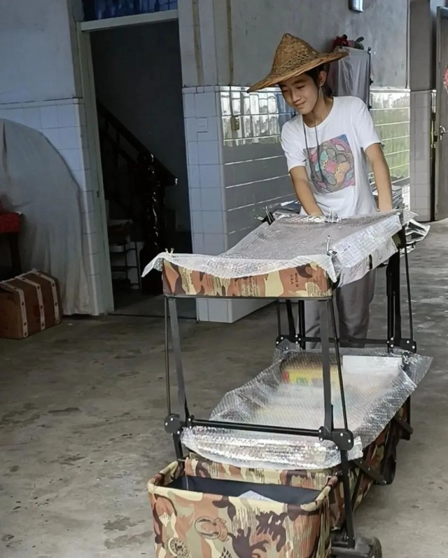 頭上戴著斗笠,臉上掛著靦腆的笑,推著裝滿課外書的迷彩小推車,趕往外婆家附近的集市擺攤。最近,14歲少年王子悅開辦“流動(dòng)圖書館”的視頻感動(dòng)了很多網(wǎng)友。
