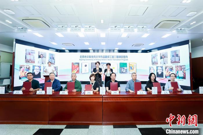 中新網(wǎng)北京9月6日電 (謝雁冰)2022“北京作家日”開(kāi)幕式暨北京市文聯(lián)優(yōu)秀文學(xué)作品翻譯工程圖書(shū)成果發(fā)布及三期項(xiàng)目簽約儀式6日在北京成功舉辦。該活動(dòng)由北京市文學(xué)藝術(shù)界聯(lián)合會(huì)主辦、中國(guó)圖書(shū)進(jìn)出口(集團(tuán))有限公司和北京老舍文學(xué)院承辦。