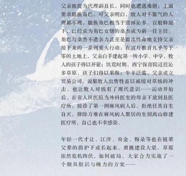 《雪山大地》將青藏高原幾十年來發(fā)生的改天換地,以及以“父親母親”為代表的三代建設者在這片土地上耕耘建設的日日夜夜,展現(xiàn)在讀者面前。人與自然、人與動物、生態(tài)與發(fā)展的主題貫穿始終,全景式地展現(xiàn)了藏族牧民傳統(tǒng)社會形態(tài)和生活樣貌的變遷。