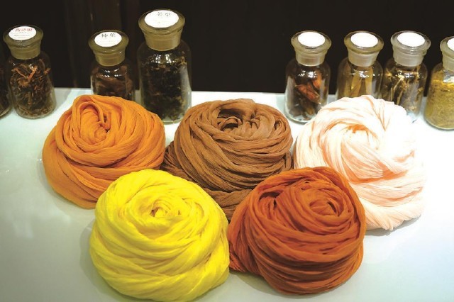 而與大多數(shù)傳統(tǒng)色彩研究者不同的是,曾啟雄極為重視實(shí)驗(yàn)考證。作為一位技藝精湛的染色家,其論著里介紹傳統(tǒng)染色的文本內(nèi)容及圖片,都是他親歷親為、反復(fù)實(shí)驗(yàn)后的成果,這也是該書(shū)最為精彩之處。在染色實(shí)驗(yàn)過(guò)程中,除了復(fù)原了傳統(tǒng)顏色的本來(lái)面貌外,作者還做出如下貢獻(xiàn):首先,通過(guò)大量實(shí)驗(yàn)印證了古籍記載的真?zhèn)危⒓m正了其中一些不實(shí)之處。比如,他通過(guò)在柘木里添加明礬、高溫染色后的結(jié)果,顛覆了以往認(rèn)為唐代帝王穿用的“柘黃”袍服是暗淡赭黃色的普遍認(rèn)知,印證其應(yīng)為類(lèi)似明清時(shí)代帝王使用的明黃色。其次,使用不少篇幅介紹了不同的染料、媒介物等因素對(duì)于染色效果等的制約作用。以石榴皮作為染材為例,當(dāng)它與不同媒染劑,如明礬、鐵等進(jìn)行染色時(shí),則會(huì)形成由黃色到黑褐色的不同顏色。即使采用相同的染法,因棉麻絲綢等介質(zhì)迥異,也會(huì)染出不同顏色等。最后,該書(shū)對(duì)于各種染料特點(diǎn)、工藝程序、顏色效果等的表述,較其他相關(guān)論著也更加纖悉無(wú)遺和引人入勝,如關(guān)于紫膠蟲(chóng)的染色工序的詳盡介紹等,讓讀者有一種身臨其境、意欲參與的感受。