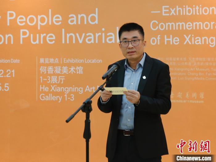 12月21日,“愿年年人月雙清——紀(jì)念何香凝誕辰145周年藝術(shù)精品展”在何香凝美術(shù)館開幕。圖為何香凝美術(shù)館館長(zhǎng)蔡顯良致辭。何香凝美術(shù)館供圖