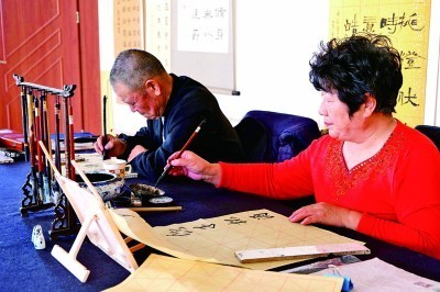 市民在社區(qū)文化中心練習(xí)書(shū)法。光明日?qǐng)?bào)記者 郭俊鋒攝