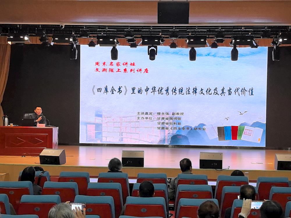 10月19日上午,“周末名家講壇”文溯隴上系列講座邀請到蘭州理工大學法學院副教授、碩士生導師、文化遺產(chǎn)法研究所所長穆永強作了題為《<四庫全書>里的中華優(yōu)秀傳統(tǒng)法律文化及其當代價值》的講座。