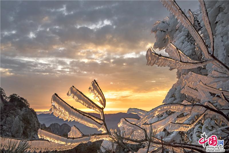 2019年最后一天黃山風(fēng)景區(qū),出現(xiàn)壯觀的日出、霧凇、云海景觀,到處銀妝素裹,冰雕玉砌,“一夜寒風(fēng)起,萬(wàn)樹(shù)銀花開(kāi)”,置身其間,仿佛進(jìn)入撲朔迷離的童話世界,給來(lái)山的游客帶來(lái)意外的驚喜。