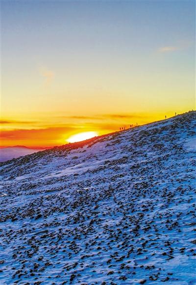元旦當(dāng)日早上6時(shí)30分,記者乘坐景交車前往巴爾斯圣山核心景區(qū)觀看日出,在抵達(dá)海拔3900米后徒步上山迎接2020年第一縷陽光。跨過及膝的雪,踏過堅(jiān)硬的碎石堆,溜過光滑的冰面,抵達(dá)了海拔4100米最佳觀賞日出點(diǎn),等待著新年第一縷陽光刺破蒼穹、越過遠(yuǎn)處的雪山之巔照耀大地。7時(shí)50分左右,陽光沖破云層,遠(yuǎn)處的雪山像是被鑲了一道金邊,此時(shí)只覺心靈與大山融為了一體,只有靜靜地等待。不知不覺中,陽光逐漸刺眼起來,這才意識(shí)到2020年第一抹陽光,承載著令人希冀的美好愿望已來到我們身旁。 蘭州晨報(bào)/掌上蘭州記者 黃芃