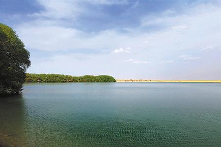 在渥洼池畔舉目遠(yuǎn)眺,在阿爾金山皚皚白雪的映襯下,偌大的渥洼池顯得安靜祥和,廣闊的水域就像一面鏡子,鑲嵌在大漠深處,在陽(yáng)光的折射下顯得格外深邃而內(nèi)斂。渥洼池畔茂密的灌木林和高大密集的蘆葦蕩,將一汪湖水浸染的泛著黛綠,蘆葦和灌木在湖水滋潤(rùn)下郁郁蔥蔥,高低錯(cuò)落有致,大有阡陌縱橫之勢(shì)。西岸不遠(yuǎn)處,南北迤邐著一座兩公里有余的沙坡頭,猶如一條盤(pán)旋的黃龍,亙?cè)诤奈鬟厯u頭擺尾,它曾經(jīng)以每年兩至三米的速度,肆無(wú)忌憚地向渥洼池水域逼進(jìn)。不過(guò),在陽(yáng)關(guān)保護(hù)區(qū)的精心培育下,一片密集的蘆葦,已經(jīng)爬到了沙梁頂上,將這條黃龍死死地鎖在原地,動(dòng)彈不得。
