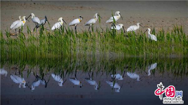 千山在翼下,萬里一春秋,文明有國界,遷徙無疆圖。追逐食物,追逐愛情,率性而為,這就是鳥的遷徙。每年的特定時(shí)節(jié),成千上萬的鳥沿著有規(guī)律的、相對(duì)固定的路線,定時(shí)地在繁殖區(qū)和越冬區(qū)之間進(jìn)行長(zhǎng)距離的往返。目前,全球9條候鳥遷徙路線中有3條路過中國,而其中有兩條遷徙路線在寧夏重疊。因此,這里就多次發(fā)現(xiàn)珍稀鳥類,比如黑鸛、中華秋沙鴨、大鴇、白尾海雕等一級(jí)保護(hù)鳥類,白琵鷺、大天鵝等二級(jí)保護(hù)鳥類,而部分鳥類都曾在沙湖水域停留覓食。據(jù)有關(guān)部門考證,在寧夏沙湖水域發(fā)現(xiàn)的鳥類種類累計(jì)達(dá)17目44科198種。