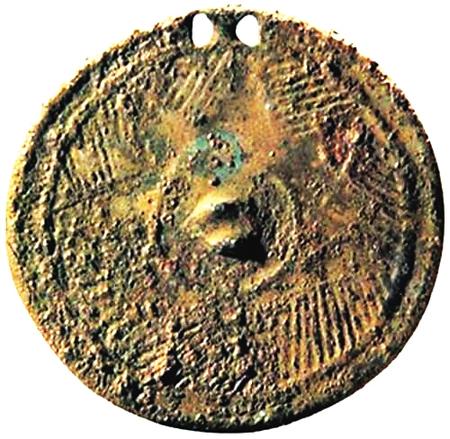 1976年青海省貴南縣尕馬臺(tái)出土的齊家文化七角星紋銅鏡,是目前我國(guó)最早的幾面銅鏡之一。