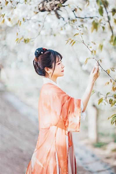 穿漢服賞花的“小姐姐”