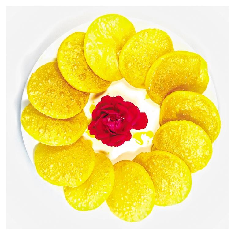 燙面油香比較薄,趁熱吃,風味極佳,它可以算主食,也可以算小面點,調節(jié)爆炒草雞、手抓這些厚味,不至于讓客人的腸胃負擔過重。