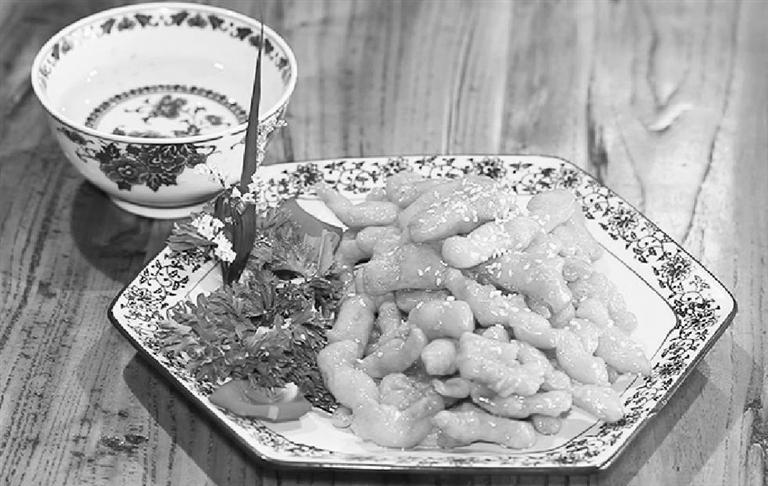 這道菜一端上來(lái),完全是糖醋里脊的扮相,實(shí)際上它是一道甜甜蜜蜜的面食。馉子,這個(gè)詞我也是第一次見(jiàn),翻閱詞條,發(fā)現(xiàn)它在古時(shí)指的就是一種圓形、有餡、用油煎或水煮的面食。