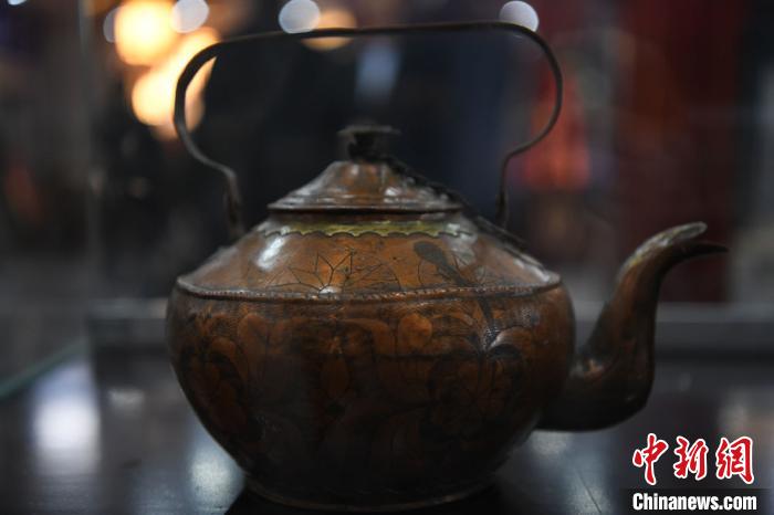 圖為牛肉面碗具和醋壺藏品展示。崔琳攝