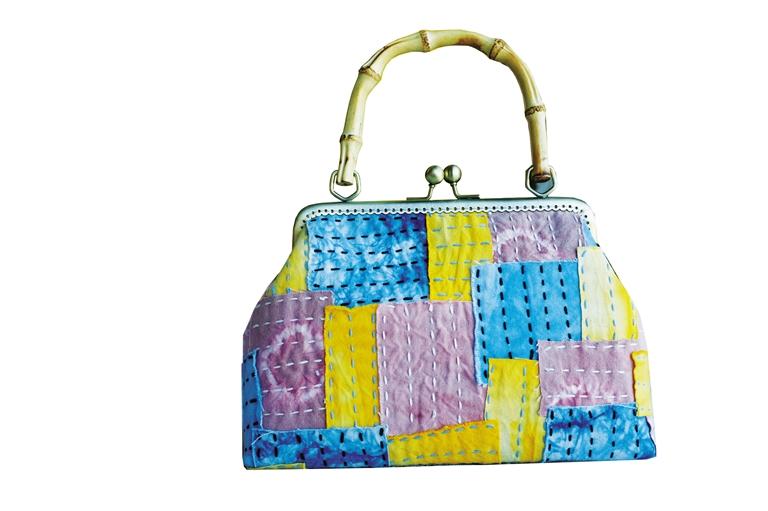 以蓼藍(lán)葉等染材染色的藍(lán)染布及其他植物性染料為原料,運(yùn)用隴西刺繡等手法繪制出各類風(fēng)格的圖案,配以精致口金、各種風(fēng)格的時尚口金包,既具有觀賞性,又具有實(shí)用性,色彩素雅、時尚大方。