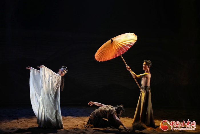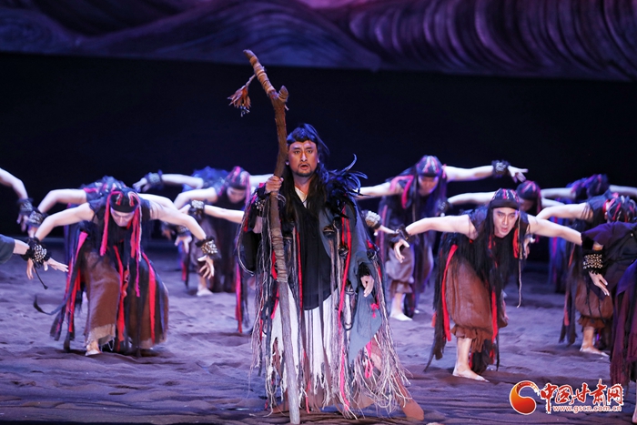 據(jù)悉,該劇由序《坤·農(nóng)耕》、第一幕《乾·天祭》、第二幕《際會(huì)》、第三幕《天梯》和尾聲《太極》組成,化用“黃帝問道”的典故,以軒轅氏(黃帝)與嫫母(黃帝次妃)的真摯愛情為主線,將傳統(tǒng)八卦之各卦象塑造為性格各異的各色人物,從他們恩愛情仇中,表現(xiàn)先民們對(duì)人與自然的探尋、理解和追求,最終在崆峒山智者廣成子的點(diǎn)撥下,五行八卦各歸其位,軒轅氏與嫫母完美結(jié)合,呈現(xiàn)出一幅天人合一、萬類呈祥的農(nóng)耕文明畫卷。