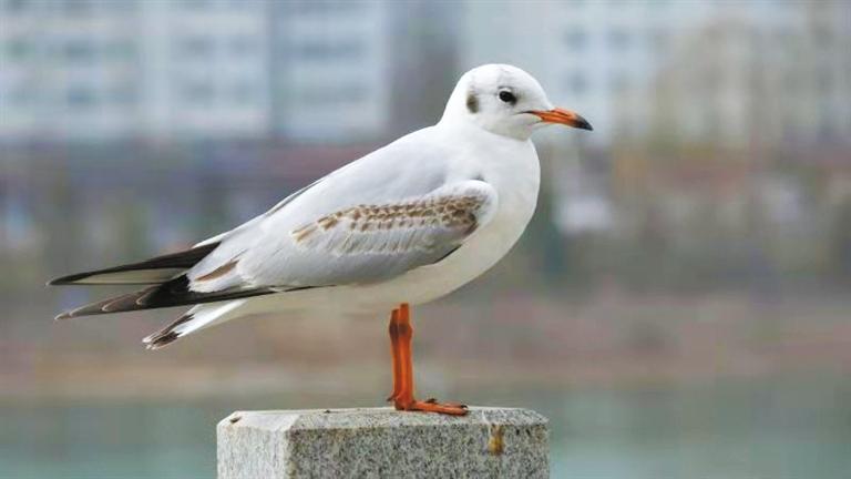紅嘴鷗,俗稱水鴿子,體形和毛色都與鴿子相似,嘴和腳皆呈紅色,身體大部分的羽毛是白色,尾羽黑色。紅嘴鷗喜集群,在世界的許多沿海港口、湖泊都可見到,多數(shù)在中國東部及北緯32度以南湖泊、河流及沿海地帶越冬。