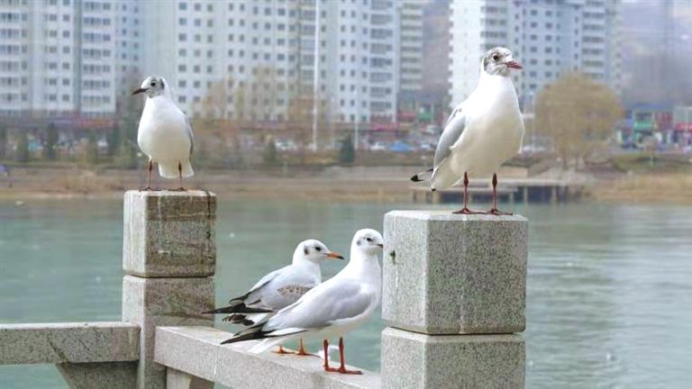 近年來,隨著黃河生態(tài)環(huán)境不斷改善及人們愛鳥、護(hù)鳥的生態(tài)意識(shí)不斷增強(qiáng),越來越多的野生鳥類前往劉家峽越冬。紅嘴鷗作為一種對生態(tài)環(huán)境和河流水質(zhì)要求較高的鳥類,每年與永靖相約,沿河居民來到河邊觀鳥喂鳥,紅嘴鷗等鳥類或駐足歇息,或追逐戲水,或悠閑覓食,或盤旋飛翔……上演著人鷗和諧相處的生態(tài)美景,各地的攝影愛好者也紛紛前去拍攝采風(fēng)。