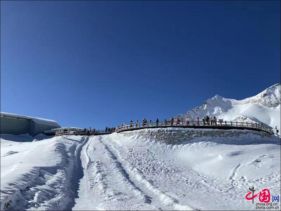 景區(qū)游覽紫外線強(qiáng),請(qǐng)做好防曬;欣賞雪景時(shí),請(qǐng)佩戴墨鏡;索道上站海拔為4860米,請(qǐng)備好紅景天、氧氣,防止高原反應(yīng)。