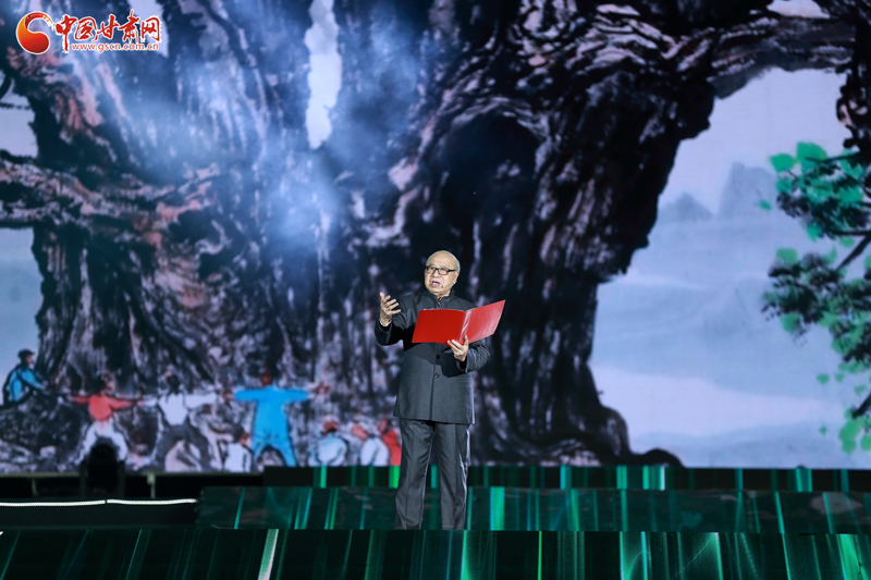 開幕式之后的“水墨關(guān)山·槐蔭天下”晚會,以“黃·紅·綠”三色歷史篇章新理念,展現(xiàn)平?jīng)鰷嫔>拮兊臍v史發(fā)展新格局。晚會以童謠《大槐樹謠》開場,展現(xiàn)了屹立于崇信山坳中的大槐樹,歷經(jīng)3200歲風(fēng)雨,矗立成為民族精神的象征。非遺表演唱《弦子腔》+《崇信民歌》展現(xiàn)了崇信人民延續(xù)農(nóng)業(yè)生態(tài)精神,演繹對真善美的追求。還有書畫頻道的書畫家們現(xiàn)場通力合作,激情創(chuàng)作,專門為崇信人民創(chuàng)作了兩幅丈二畫作——《雄峙千秋》《公劉與崇信》,為本場晚會添色添彩。