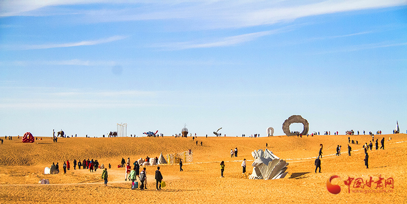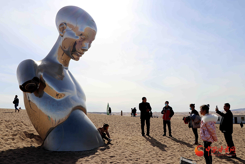 “在沙漠里賞雕塑、過大年,已經(jīng)成為一種‘新年俗、新常態(tài)、新時(shí)尚’。” 民勤縣文體廣電和旅游局局長方煜介紹說,中外藝術(shù)大師們精心創(chuàng)作的117件雕塑藝術(shù)精品永久矗立在浩翰沙漠中,見證了一個(gè)從無到有、點(diǎn)“沙”成金的奇跡,成就了全球首個(gè)沙漠雕塑藝術(shù)主題公園,四海賓朋聞訊相約、絡(luò)繹而來,感受民勤生態(tài)環(huán)境治理成果,見證民勤生態(tài)文明建設(shè)成效。