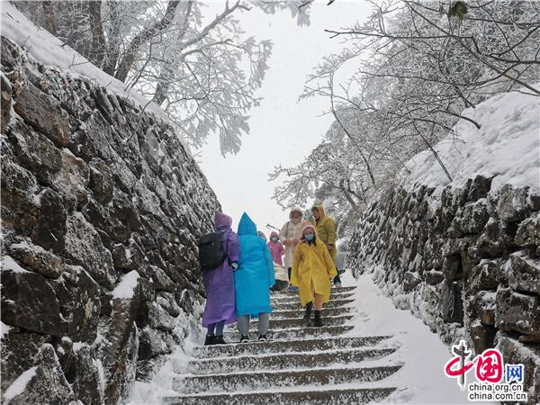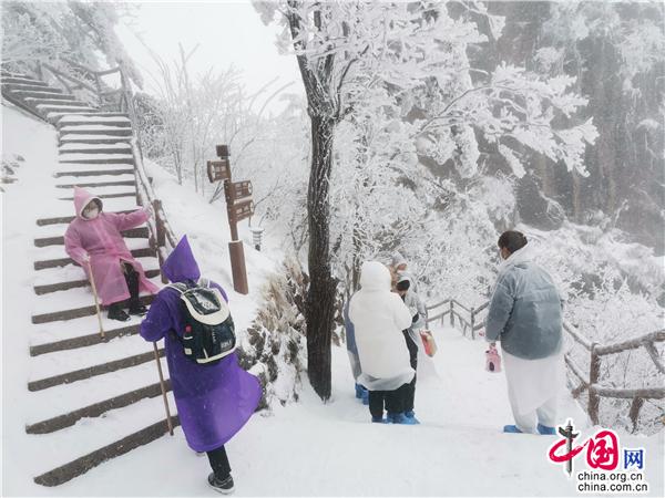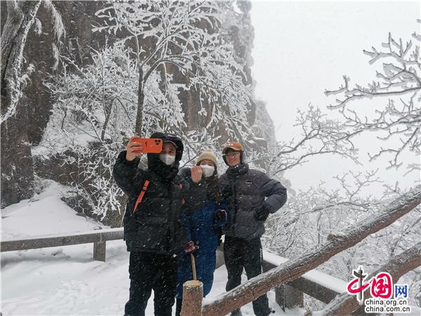 原標(biāo)題:安徽黃山又又又降雪啦!驚羨游客 催熱賞雪游