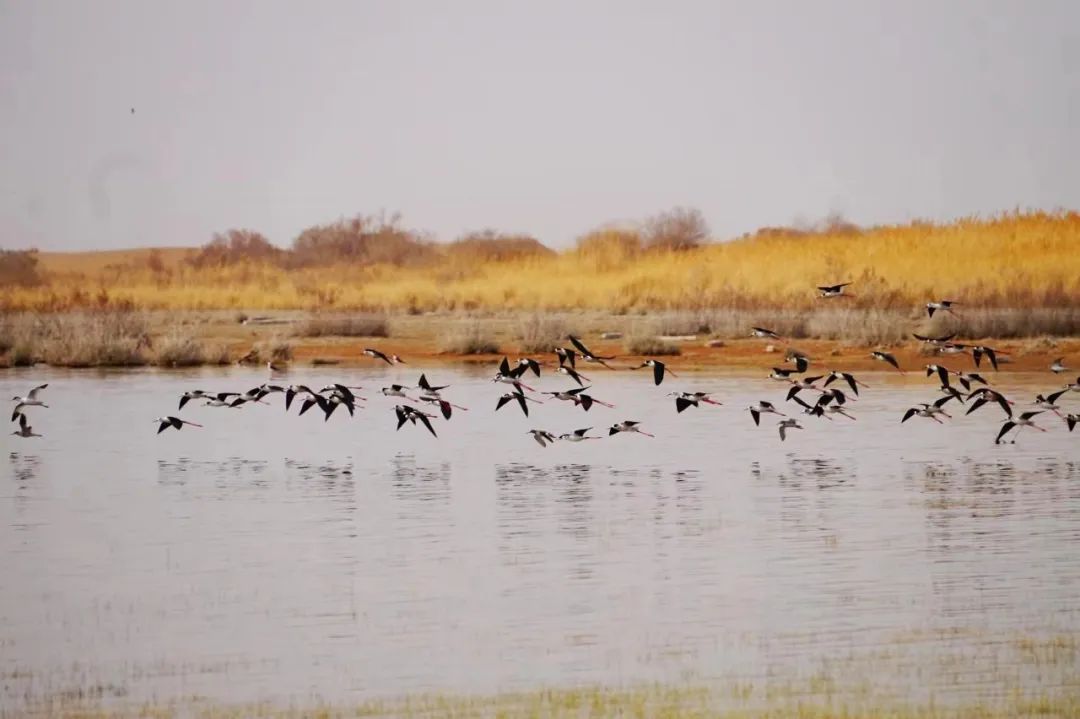 四月的敦煌大地春和景明,在庫姆塔格沙漠的邊緣,位于陽關(guān)濕地的壽昌海子波平如鏡,碧水映襯著祁連山上的雪峰,各種色彩斑斕地鳥兒仿佛收到了春天的邀約,在這里參加一場(chǎng)盛大的聚會(huì)。它們有的在湖面上引頸入水自在覓食,有的踏波翩翩起舞,有的追逐嬉戲鳴唱,有的在岸邊閑庭信步、悠然自得地曬太陽......構(gòu)成了一幅多姿多彩的和諧自然生態(tài)畫卷。
