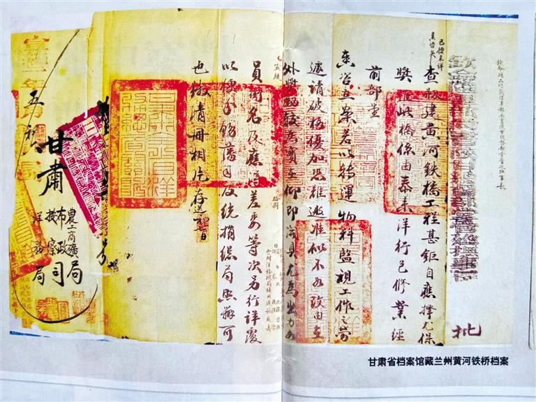 在古金城蘭州架設(shè)橫跨于黃河南北兩岸的鐵橋,曾是左宗棠的夢(mèng)想,只因當(dāng)時(shí)洋商索價(jià)過(guò)高而作罷。30年后,正值清末實(shí)行新政,黃河鐵橋在陜甘總督升允和彭英甲的任上創(chuàng)修成功。建橋過(guò)程慘淡經(jīng)營(yíng),艱苦備至,已人所共知。好在建設(shè)黃河鐵橋形成的檔案,歸檔于甘肅農(nóng)工商礦總局,沒(méi)有存于當(dāng)時(shí)的布政使司,幸運(yùn)地躲過(guò)了民國(guó)二年那一劫。甘肅農(nóng)工商礦總局后更名為甘肅省署實(shí)業(yè)廳,民國(guó)十六年(1927年)甘肅省政府改實(shí)業(yè)廳為建設(shè)廳,這些檔案存于建設(shè)廳。1949年7月,國(guó)民黨甘肅省政府逃離前發(fā)出緊急命令:“轉(zhuǎn)移前將政府檔案做緊急處理”,重要檔案進(jìn)行“焚毀、埋藏、轉(zhuǎn)移”,次要檔案“從速列冊(cè)銷(xiāo)毀”。只因倉(cāng)皇逃離,未來(lái)得及銷(xiāo)毀。人民解放軍從解放蘭州的戰(zhàn)火中把包括鐵橋檔案在內(nèi)的許多檔案搶救出來(lái),由蘭州軍管會(huì)接管。2002年,《蘭州黃河鐵橋檔案》入選首批《中國(guó)檔案文獻(xiàn)遺產(chǎn)名錄》。
