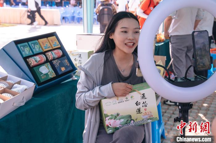 主播現(xiàn)場(chǎng)直播帶貨,銷售建蓮。 李南軒 攝
