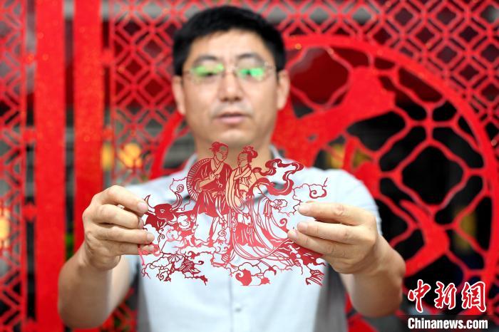 8月4日,是中國(guó)傳統(tǒng)節(jié)日七夕節(jié)。河北省衡水市阜城縣剪紙藝人尤金水創(chuàng)作了《牛郎》《織女》《鵲橋相會(huì)》三幅“七夕”剪紙作品,傳遞千年浪漫情。據(jù)介紹,作品采用阜城剪紙陽(yáng)刻的手法,裝裱后利用立體投影的方式,可以把畫(huà)面投影到“月亮”上,既浪漫又神奇。
