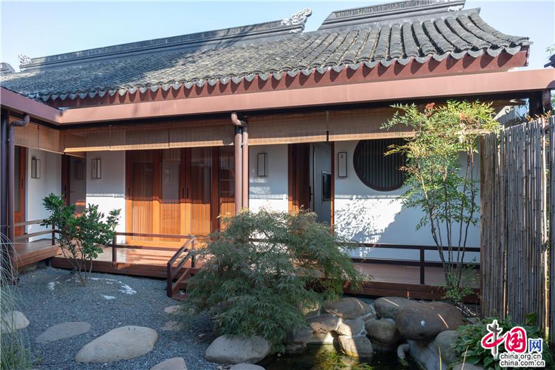“一見面就產(chǎn)生一種要在這里覓房安居的奇怪心愿。”走進(jìn)青瓦白墻圍合的宅院,儼然像打開了一幅充滿人文意趣的雅致生活圖景畫。一處竹柵,幾處閑樸,池魚貪吃著天上云絮。靜謐的庭院里尋得萬(wàn)般自在。