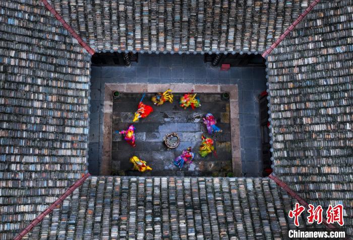 安徽省宣城市郎溪縣省級非遺小馬燈在郎溪縣濤城鎮(zhèn)慶豐村大佛山養(yǎng)心谷展演。 李曉紅 攝