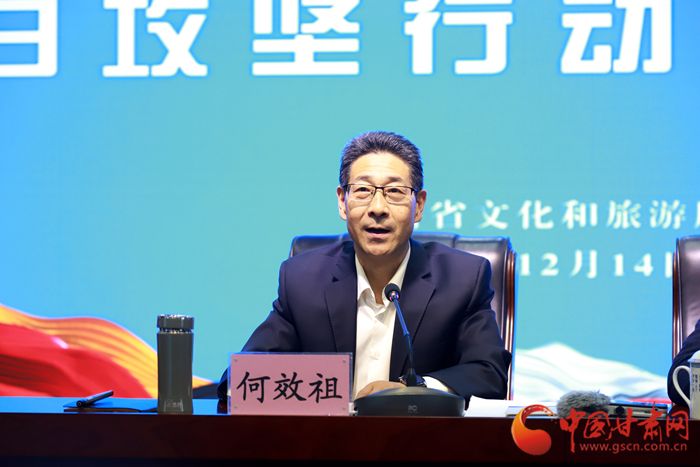 中國甘肅網(wǎng)12月14日訊 (本網(wǎng)記者 張?zhí)m琴 文/圖)14日上午,甘肅省文旅廳召開“文化進(jìn)萬家 旅游迎新春”百日攻堅(jiān)行動啟動大會,向全省文旅系統(tǒng)吹響了復(fù)工復(fù)產(chǎn)的“動員令”,市場復(fù)蘇的“集結(jié)號”。省委宣傳部副部長、省文旅廳黨組書記何效祖在蘭州主會場出席并講話,通過視頻會議向各市州文旅部門安排部署工作。