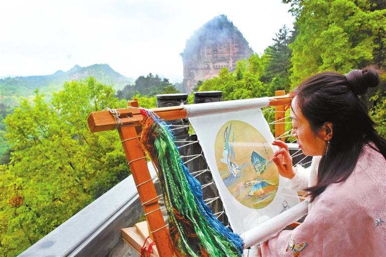 “應(yīng)用現(xiàn)代審美思維創(chuàng)作出麥積山石窟系列刺繡文創(chuàng)作品,麥積刺繡藝術(shù)品的觀賞價值和實(shí)用價值會進(jìn)一步凸顯。”曹苑春說。除此之外,畫繡、雙面繡團(tuán)扇、香包、刺繡宮燈、刺繡擺臺等作為裝飾生活的藝術(shù)品,已被很多人所喜愛,刺繡作品正以全新的面貌走入尋常百姓家。