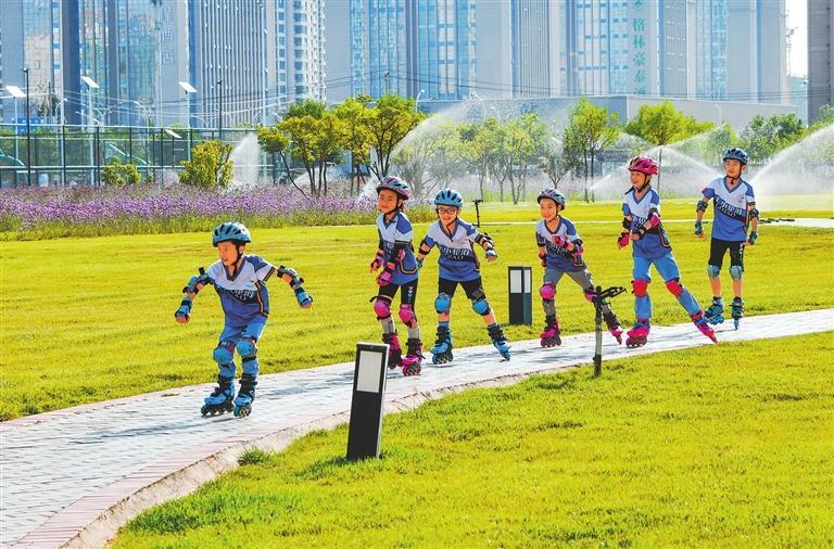 張掖奧林匹克森林公園成為市民健身休閑的好去處。新甘肅·甘肅日?qǐng)?bào)通訊員 王將