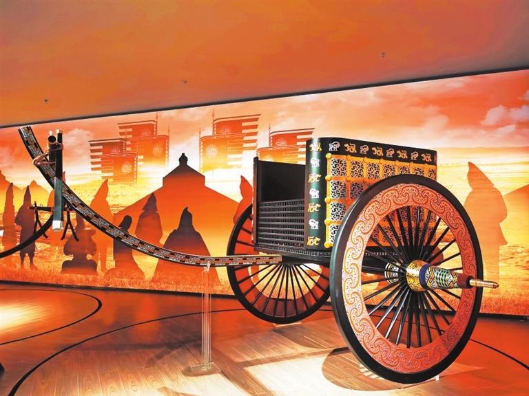 馬家塬車輿博物館特別舉辦了《車轔馬蕭 西戎絕唱——馬家塬出土車輿文化展》專題展覽,綜合展示了馬家塬遺址考古發(fā)掘成果與古代車輿文化,2023年8月正式對外開放。展覽內容共分為“奢華葬俗 驚世絕唱”“載馳載驅 旌旗獵獵”“縱橫馳騁 多元匯聚”三個部分。展覽中最引人注目的是大量設計考究、工藝復雜的隨葬車輛。