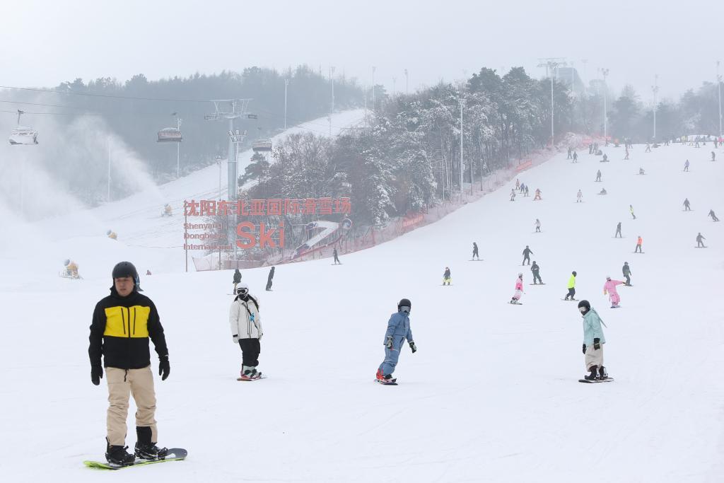 滑雪愛好者在沈陽市東北亞滑雪場(chǎng)滑雪。新華社記者陳為 攝